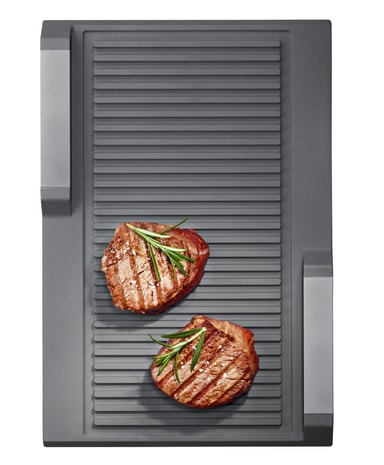 Nå kan du endelig tilberede kjøtt, fisk og grønnsaker, grillet til perfeksjon, takket være Siemens grillplate som forvandler platetoppen din til en kompetent grill.