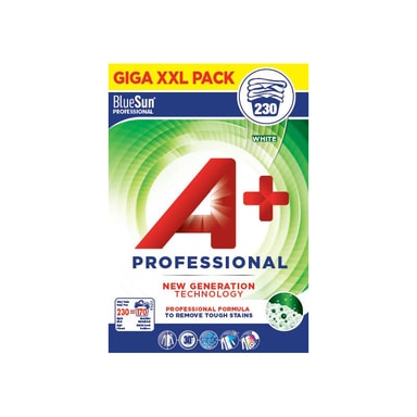Fjern tøffe flekker fra fargede klesplagg effektivt, takket være A+ Professional White vaskemiddel. Vaskemiddelet har en spesialdesignet formel og er A+-vurdert, som betyr at det er skånsomt mot miljøet.