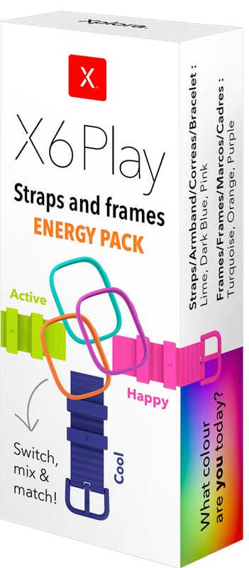La barna raskt tilpasse utseende på sin Xplora-smartklokke med Xplora X6Play Energy Pack klokkereimer. Pakken med tre klokkereimer og tre rammedeksler gjør at de kan leke seg med en rekke fargekombinasjoner. La barna mikse og bytte fargekombinasjoner for å gjøre sin smartklokke enda mer personlig.