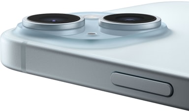 iPhone 15 har et solid design av gjennomfarget glass og aluminium. Den er sprut-, vann- og støvbestandig. (1) På forsiden har den Ceramic Shield, som er sterkere enn glasset på noen smarttelefon. Og SuperRetina XDR-skjermen på 6,1 tommer (2) er opptil dobbelt så lyssterk i solskinn sammenlignet med iPhone 14.