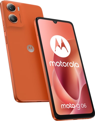 Motorola G06 LTE smarttelefon har en 6,88" skjerm med lyssterke farger, 50MP KI-kamera som kan ta utrolige bilder, Dolby Atmos stereolyd, 2-dagers batteri, samt IP64-beskyttelse for det ultimate innen underholdning og varighet.Les mer om produktet