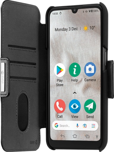 Beskytt smarttelefonen din med slitesterke Doro 8110 lommebokdeksel, et flippdeksel med tre kortlommer til ID- eller kredittkort, filtforet innside, magnetisk lås og tilgang til alle knapper og porter. Du trenger ikke bekymre deg for å miste mobilen.
