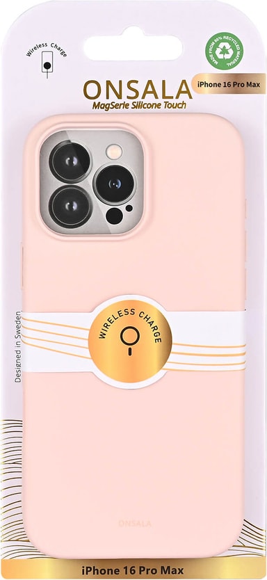 • Onsala iPhone 16 Pro Max silikondeksel (krittrosa)
