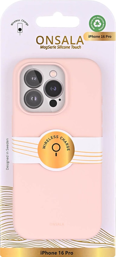 • Onsala iPhone 16 Pro silikondeksel (krittrosa)
