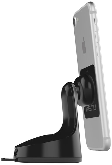 Det magnetiske mobilfestet gjør det enkelt feste og ta av mobilen med én hånd, mens sugekoppen sørger for at Kenu Airbase sitter godt på dashbordet eller i frontruten. Med kuleledd kan du rotere enheten din 360 grader for optimal synsvinkel.