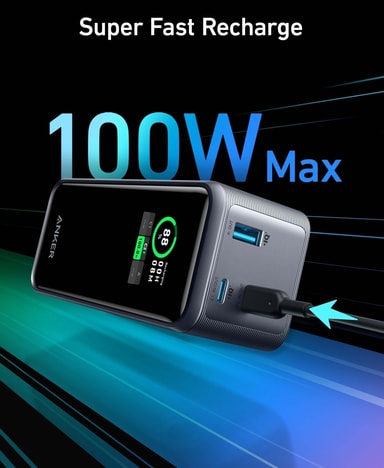Anker Prime 200W reservestrømforsyning er en kraftig og kompakt bærbar lader som gir deg utrolig rask lading av alle enhetene dine. Enten det er en bærbar datamaskin, telefon eller annen elektronikk, er denne powerbanken det perfekte valget. Anker Prime 200W Power Bank er utstyrt med to USB-C-porter og én USB-A-port, som gir en utgangseffekt på opptil 200 W. Du kan lade to bærbare datamaskiner med 100 W hver. Du kan for eksempel lade MacBook Pro 16"" (M2 Pro) til 50 % på bare 40 minutter. Prime 200W har en allsidig informasjonsskjerm som lar deg overvåke informasjonen om reservestrømkilden. På skjermen kan du se batteriets gjenværende kapasitet, hver USB-ports nåværende inngangs-/utgangseffekt, batteriets varighet med den aktuelle belastningen, batteriets ladetid, ladesykluser og batteritemperatur.
