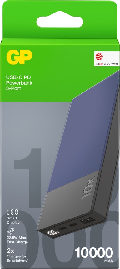 GP M2+ 10 000 mAh powerbank støtter PD 3.0 QC 3.0 for rask og pålitelig lading. Den har USB-A- og USB-C-porter og opptil 22,5 W strøm, noe som lader telefonen til 58 % på 30 minutter. For ekstra trygghet er den utstyrt med 6 sikkerhetsfunksjoner.Les mer om produktet