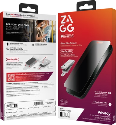 ZAGG Elite Privacy glass til iPhone 17 tilbyr utmerket beskyttelse med gjennomsiktig TPU-materiale og perfekt passform på 6,3-tommer, og gir klar og privatlivsvernende beskyttelse til din Apple-enhet.Les mer om produktet