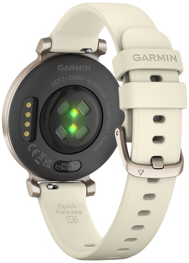 Med Garmin Lily 2 smartklokke kan du opprettholde ditt elegante og stilrene utseende mens du har tilgang til en innebygget pulsklokke, søvnsporing og en rekke av treningsmoduser. Med velværefunksjonene, kan du bli oppdatert på din helseinformasjon, og om et uhell skjer, kan dine nærmeste varsles av hendelsesvarslings-systemet. Aluminiumsomslaget gir et slitesterkt og elegant utseende, og er kompatibel med en rekke hurtigutløsende stropper.