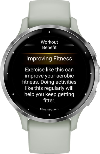 Smartklokken kan registrere løping, sykling, tredemølle, ellipsemaskin, kondisjonstrening, yoga og andre aktiviteter. Den er også svømmesikker og tåler 5ATM vann, slik at du fortsatt kan bruke den i bassenget eller dusjen. Med Body Battery Monitor kan du se kroppens energinivå, slik at du vet når du er klar for aktivitet. Venu 3S har også en rullestolmodus som sporer skyvebevegelser og tilbyr forhåndsinnlastede treningsøkter som er tilpasset rullestolbrukere. Takket være den kostnadsfrie smartappen Garmin Coach kan du få personlige treningsplaner.