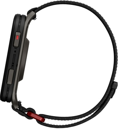 Venu X1 er utstyrt med en 2-tommers AMOLED-skjerm, og tilbyr et lyst, lettlest grensesnitt, beskyttet av ripesikkert safirglass. Den lette titanium-urkassen og ComfortFit nylonremmen sikrer komfort hele dagen. Det slanke, allsidige designet gjør den egnet for enhver anledning, enten du er på treningssenteret, på kontoret eller ute på byen.