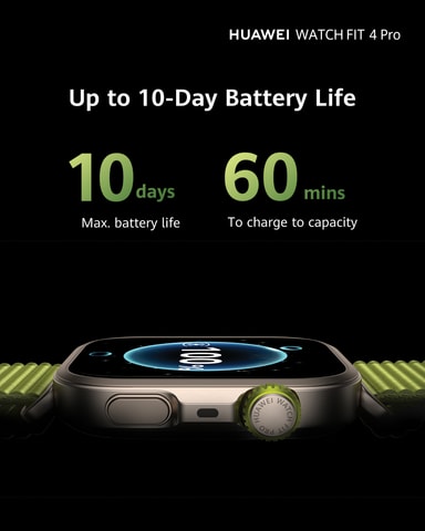 Huawei Watch Fit 4 Pro er bygget for å holde tritt med din aktive livsstil, og leverer opptil 10 dagers batterilevetid på en enkelt lading. Enten du sporer treningsøkter, overvåker helsen din eller utforsker nye stier, kan du stole på at klokken vil holde tritt på pålitelig vis.