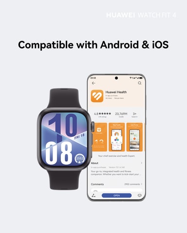 Huawei Watch FIT 4 kombinerer et slankt, ultralett design med avanserte sportsmoduser for aktiviteter som løping, fotturer og sykling. Den hjelper deg med å nå helse- og treningsmålene dine ved å tilby helhetlig helsesporing med funksjoner som dual-band GPS, barometer og opptil 10 dagers batteritid. Kompatibel med både iOS og Android.