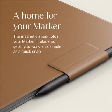 Med Book Folios gjennomtenkte inkludering av en dedikert stropp mister du aldri Marker eller Marker Plus igjen. Denne funksjonen gir et praktisk og sikkert sted å oppbevare skriveredskapet, slik at du alltid har det for hånden.