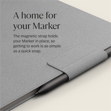 Med Book Folios gjennomtenkte inkludering av en dedikert stropp mister du aldri Marker eller Marker Plus igjen. Denne funksjonen gir et praktisk og sikkert sted å oppbevare skriveredskapet, slik at du alltid har det for hånden.