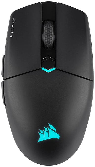 Corsair Katar Elite trådløs gamingmus vil gjøre deg til en formidabel kraft på den virtuelle slagmarken med en ekstremt lett vekt på 69g, pålitelig tilkobling, Corsair Quickstrike-knapper, Corsair Marksman 26K optisk sensor og en batteritid på opptil 110 timer.