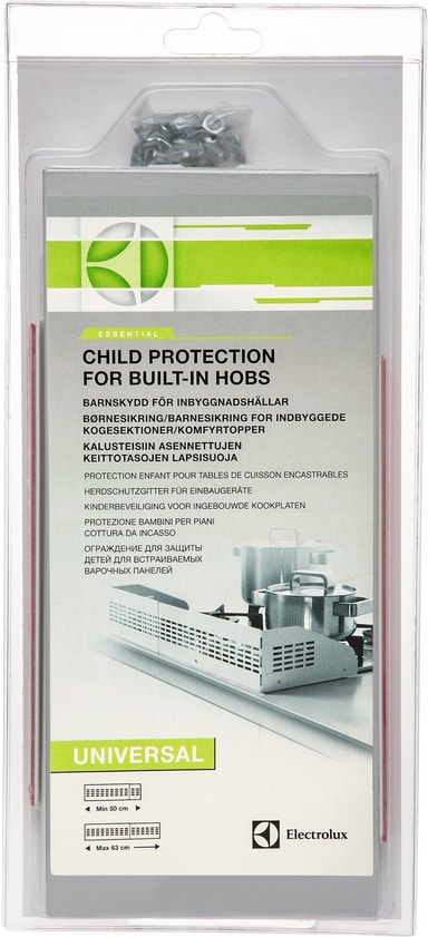 Electrolux barnesikring for innebyggd platetopper. Beskyttelsen er universal, lett å montere og beskytter fra å bli brent. Dimensjoner: Min. 50 cm – maks. 65 cm. Inneholder 1 stk.Les mer om produktet