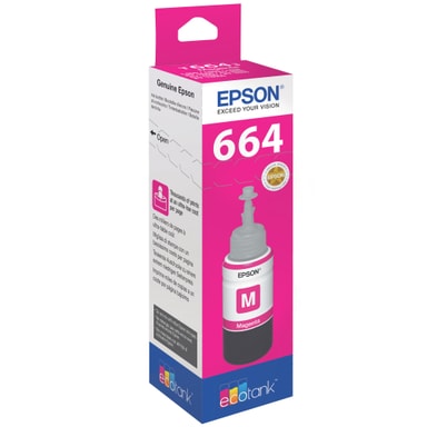 Bytt ut magenta blekkpatronen på din Epson Ecotank skriver. Den inneholder 70 ml blekk av høy kvalitet som gir deg muligheten til å spare utskriftskostnader i forhold til vanlige blekkpatroner.
