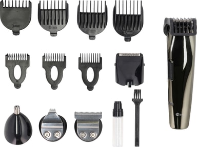 Takket være praktiske og brukervennlige Equip multigroomer 30965, kan du trimme øret, nesen og håret med én enkelt enhet. Trimmeren kommer med en rekke tilbehør. Dessuten er den trådløs, oppladbar og har en brukstid på 60-80 minutter.