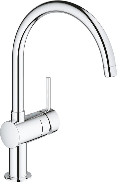 Grohe Minta blandebatteri med C-formet kran er en pålitelig og stilig hjelper i ethvert kjøkken. Det kommer med en høy C-formet kran for enklere fylling av større gryter. For å gjøre det ekstra praktisk har blandebatteriet justerbar svingrekkevidde som kan justeres til 0, 150 eller 360 grader. Svingfunksjonen gir jevn bevegelse og er ideell dersom du har dobbel kjøkkenvask.