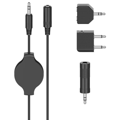 Med denne adapteren med 1,2 m opprullbar kabel kan du koble hodetelefonene til inntak på fly slik at du kan se film eller høre på musikk om bord.