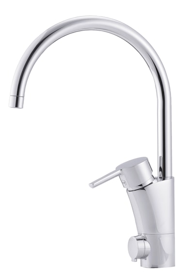Elegant blandebatteri til kjøkken i krom, med høy C-tut, integrert stoppekran for oppvaskmaskin og innebygd energisparingssystem, ESS.Les mer om produktet