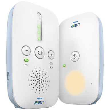 Philips Avent babymonitor SCD50326 lar deg holde øye med babyen din mens du slapper av, lager mat eller gjør husarbeid. Produktet har Smart ECO-modus, en rekkevidde på opptil 330 meter, og takket være DECT-teknologi, en krystallklar forbindelse.