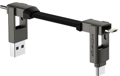 Takket være Rolling Square InCharge 6 multiportkabel kan du enkelt lade alle enheter med kun én enkel kabel. 4-i-1-designet inkluderer USB-A, USB-C, Lightning og MicroUSB, så du kan mikse og matche for å lade stort sett alle typer enheter. Den flettede kabelen gir et kraftig og allsidig sammenleggbart design med magnetiske porter som enkelt lar deg feste den til en nøkkelhank.