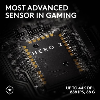 HERO 2 optisk gaming-sensor støtter en DPI på opptil 44000, noe som gir presis kontroll og tilpasningsevne til ulike spillscenarier. Denne sensoren sikrer 888 IPS for å øke nøyaktigheten av raske bevegelser, noe som gir en fordel i raske spill. Den har også null glatting, akselerasjon eller filtrering, slik at den kun sender ubearbeidede sensordata for maksimal kontroll.