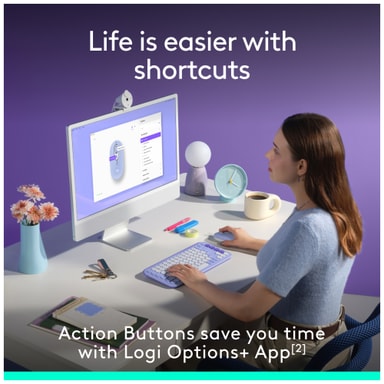 Med Logi Options+-appen kan du programmere Logi-knappen, sjekke batterinivået, tilpasse rullealternativer og musens følsomhet og mye mer.