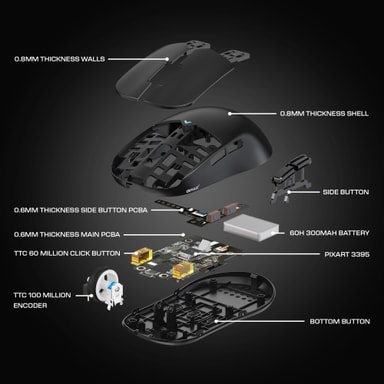 PAW 3395 optiske sensor støtter en høy DPI på opptil 26000, noe som muliggjør presis kontroll og tilpasningsevne til ulike spillscenarier. Denne sensoren sikrer en 2K polling-frekvens for høy respons, lav latens og nøyaktige markørbevegelser, noe som gir en konkurransefordel i raske spill.