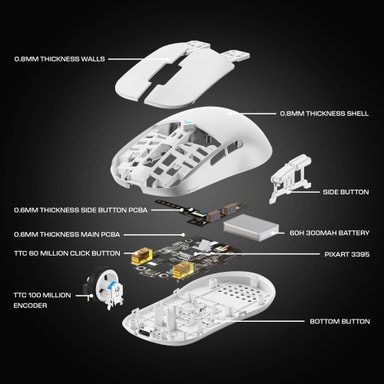PAW 3395 optiske sensor støtter en høy DPI på opptil 26000, noe som gir presis kontroll og tilpasningsevne til ulike spillscenarier. Denne sensoren sikrer en 2K oppdateringsfrekvens for høy respons, lav latens og nøyaktige markørbevegelser, noe som gir en konkurransefordel i raske spill.