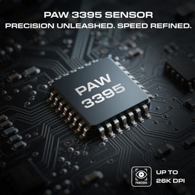 PAW 3395 optisk sensor støtter en høy DPI på opptil 26 000, noe som gir presis kontroll og tilpasningsevne til ulike spillscenarier. Denne sensoren sikrer en 4K-oppdateringsfrekvens for høy respons, lav latens og nøyaktige markørbevegelser, noe som gir en konkurransefordel i raske spill.