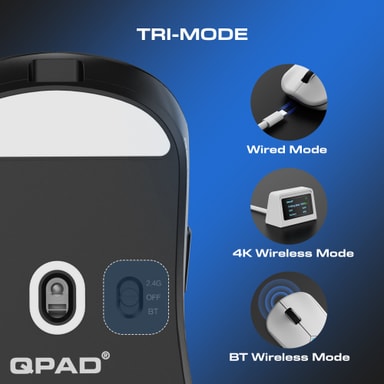 QPAD Mark Model 3 Vision trådløs mus har et ambidekstralt design med en justerbar DPI på opptil 26 000 DPI, en PAW 3395-sensor, tri-mode-tilkobling, en pollingfrekvens på 4000 Hz og en Vision-skjerm for sanntidsvisning av ulike innstillinger.Les mer om produktet
