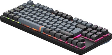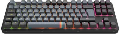 Tastaturet har et 80% Tenkeyless-format, som gir mer skrivebordsplass til musebevegelser samtidig som det beholder de viktigste tastene. Det dobbeltlagrede Poron-skummet som er plassert mellom PCB-platen og bunndekselet demper støy og forbedrer fleks-akustikken. Det førsteklasses halvt aluminiumsstøpte metallchassiset sikrer solid stabilitet og premium skrivefølelse. I tillegg er de dobbelskutte tastehettene ergonomisk utformet med en lett avrundet CSA-profil for behagelig skriving.