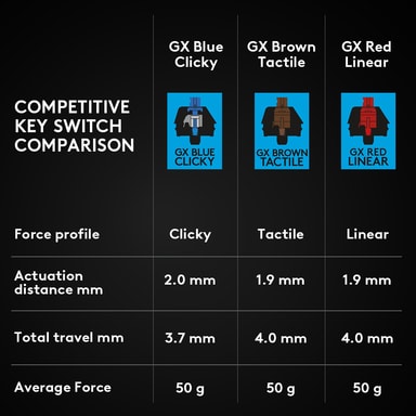 Tastaturet har mekaniske GX Brown-brytere som gir deg behagelig taktil feedback, samtidig som de er stillegående slik at du får fokusert på det som gjelder, spillingen. Takket være den korte tastevandringen på 1,9 mm som kun krever 50 gram nedtrykkskraft, får du det som skal til for å kunne mestre både FPS- og kompetitive spill.