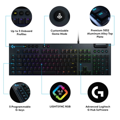 De fem G-knappene er fullstendig programmerbare, slik at du kan skape mesterkombinasjoner og utføre dem raskt og enkelt. Du kan også lage opptil tre profiler med ulike innstillinger som kan lagers i tastaturets interne minne.