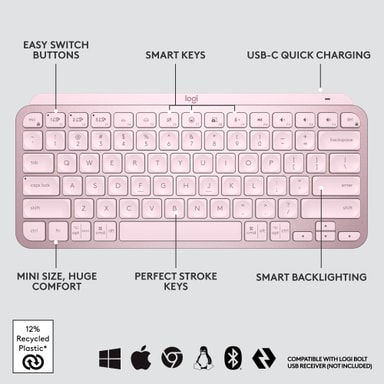 • Logitech MX Keys Mini trådløst tastatur (rose)