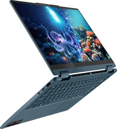 Lenovo Yoga 7 14AKP10 AI 7-350/32GB/1024/OLED 14" Copilot+ PC med Lenovo Yoga-penn og allsidig design støtter din kreativitet. Velg mellom nettbrett-, telt- eller PC-modus med touchskjerm og nyt kraftig ytelse sikret av AMD Ryzen™ AI 7-prosessor, levende farger på 14" OLED-skjermen og 22 timers batterilevetid.