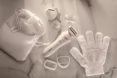 Med de inkluderte tilbehørfestene har du alt du trenger for en uanstrengt barbering. Pakken inkluderer et bikinitrimmerhode og bikinikam for å forme ømfintlige områder, fotfil til pedikyr, mykt glidetilbehør, hudstrammingstilbehør og en oppbevaringspose som lar deg holde alt pent på ett sted.