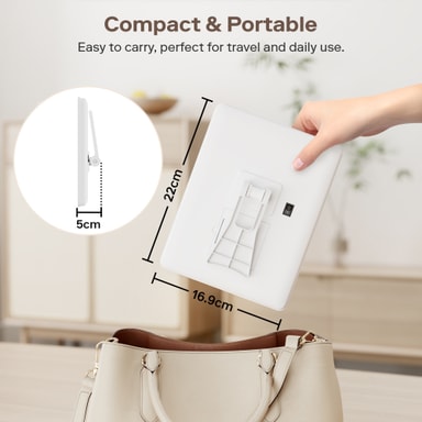 Dette speilet er laget av slitesterkt PP-materiale for langvarig bruk. Det er 16.9 x 5 x 22cm stort og har en elegant og kompakt design som gjør det ideelt for ethvert sminkebord eller reiseoppsett.