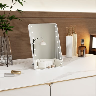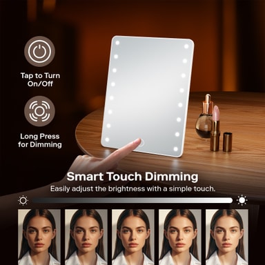 16 LED-pærer gir eksepsjonell belysning for feilfri påføring av sminke og pleie. Disse lyse pærene gir jevn belysning, minimerer skygger og forbedrer refleksjonen din.
