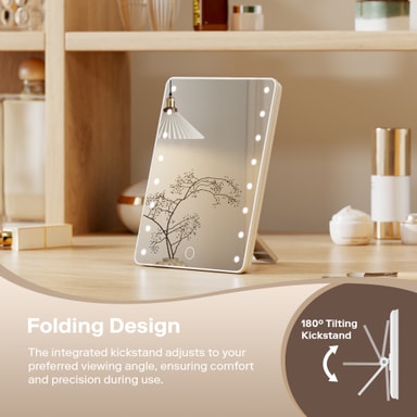 Dette speilet drives av 4 AAA-batterier (ikke inkludert), noe som gjør det enkelt å ta med seg i skjønnhetsrutinen. Den batteridrevne designen sikrer at du kan bruke speilet hvor som helst.