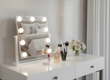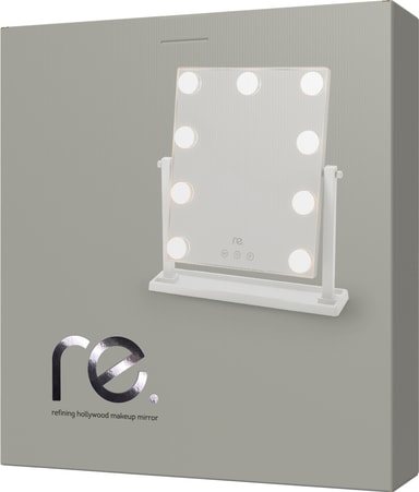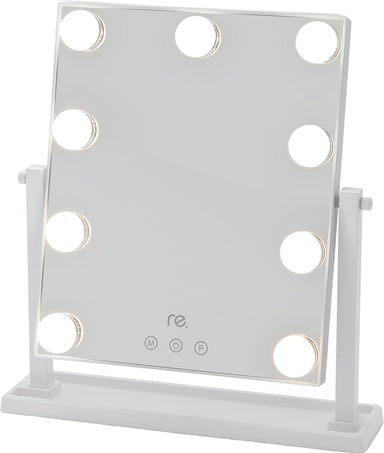 Oppgrader skjønnhetsrutinen din med re. Hollywood 9 LED sminkespeil. Det har ni dimbare LED-pærer, justerbar belysning og 3 fargemoduser for perfekt sminke. Berøringskontrollen gjør det enkelt å bruke.Les mer om produktet