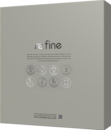 Med re-speilet kan du enkelt justere lysstyrken og veksle mellom tre lysmoduser - varmt, naturlig og kjølig.
