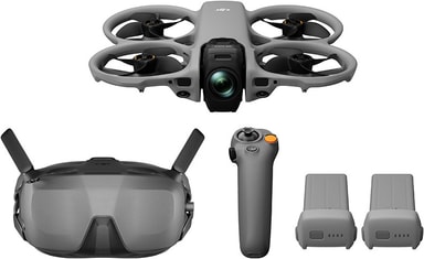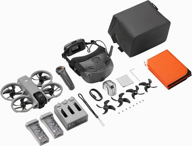 Denne comboen inkluderer DJI Goggles N3, som tilbyr en oppslukende førstepersonsvisning. De leverer dronens direktestrøm med lav signalforsinkelse og støtter ofte hodesporing for å kontrollere kameragimbalen intuitivt.