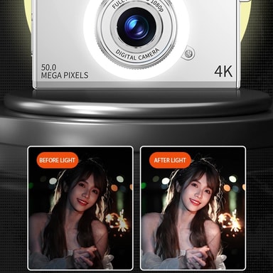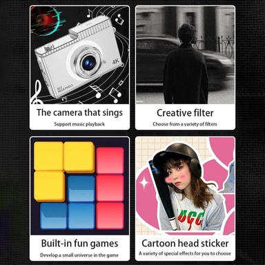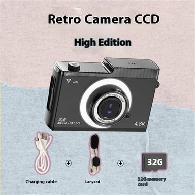 【Dobbelt kamerasystem】 Med front- og bakkameraer med H63P-objektiv tar dette retrostilte kameraet bilder og videoer av høy kvalitet