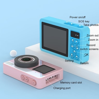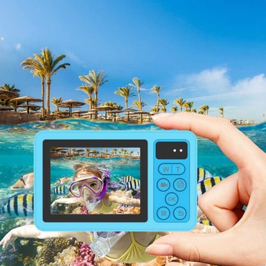 D70 2,8 + 1,44 tommers digitalkamera med dobbel skjerm, vanntett kamera med 32 GB kort + kortleser - Blå【Dual Screen Design】 Har en 2,8-tommers IPS-hovedskjerm og en 1,44-tommers sekundærskjerm for allsidige visningsalternativer【Høyoppløselig bildebeLes mer om produktet