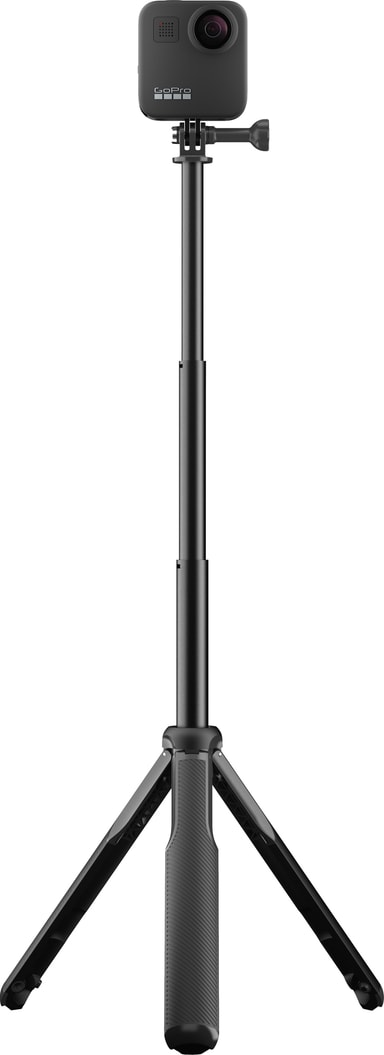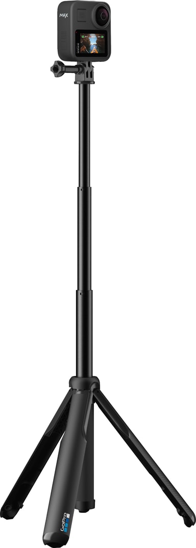 GoPro Max håndtak + tripod-stativ er spesielt utviklet for at du skal kunne ta 360° bilder uten at stativet viser. Stangen holder kameraet på plass, kan forlenges opptil 56 cm og gjøres om til et tripod-stativ med magnetiske ben. Kompatibelt med alle GoPro-kameraer.