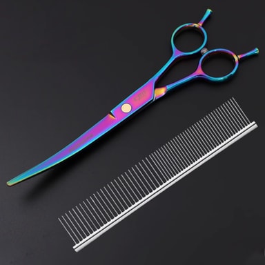 Hundesakser av høy kvalitet laget av rustfritt stål (4CR13), som gjør at saksenes blader ikke ruster og beholder sin fine kvalitet over tid. Håndtaket er behagelig å holde og gir et sikkert grep.